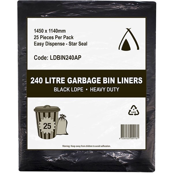 Strong LDPE garbage bin liners suitable for all 54 Litre - 240 Litre garbage bins - Ideal for mid to heavy-weight applications in restaurants, clubs, hotels and councils