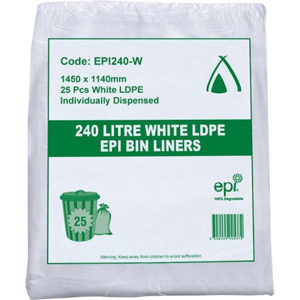 HUHTAMAKI LDPE BIN LINER EPI 240 LITRE WHITE PACK 25