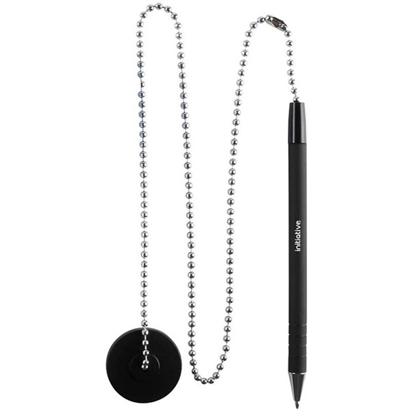 Find where you left it with Initiative's captive ballpoint pen, which comes complete with an adhesive disk, making it ideal for counter and desktops - Quality plastic base with luxurious 550mm metal chain attached to pen