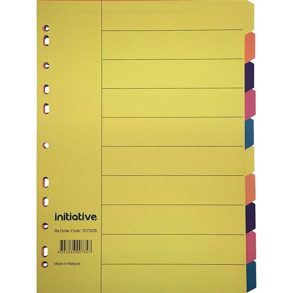 INITIATIVE DIVIDERS MANILLA 10 TAB A4 BRIGHT COLOURS