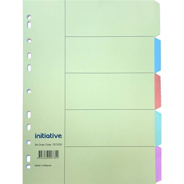 INITIATIVE DIVIDERS MANILLA 5 TAB A4 PASTEL COLOURS