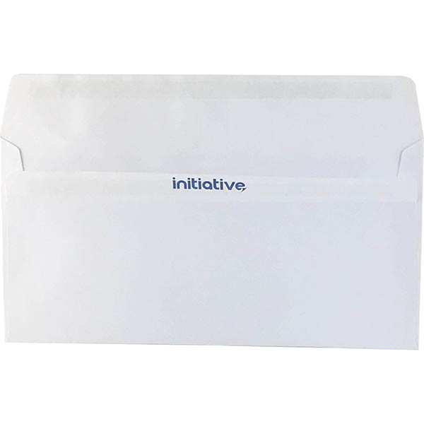 INITIATIVE DL ENVELOPES WALLET PLAINFACE SELF SEAL 80GSM 110 X 220MM WHITE BOX 500