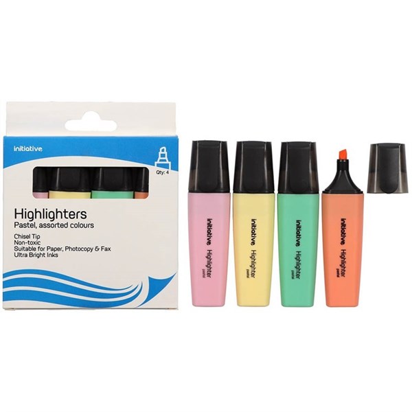 INITIATIVE HIGHLIGHTER CHISEL ASSORTED PASTEL WALLET 4