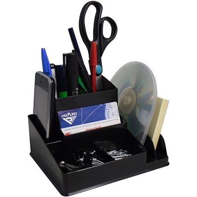 • Multi compartments can store pens and pencils, scissors, ruler, paper clips, business cards, mobile phone, Post It Notes, letters, CDs etc