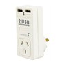 ITALPLAST POWER SINGLE ADAPTOR WITH SURGE PROTECTION / 2 X USB WHITE