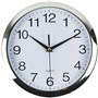 Tell the time with this modern 26cm wall mountable clock with white face and chrome trim - Suitable for corporate environment and home office
