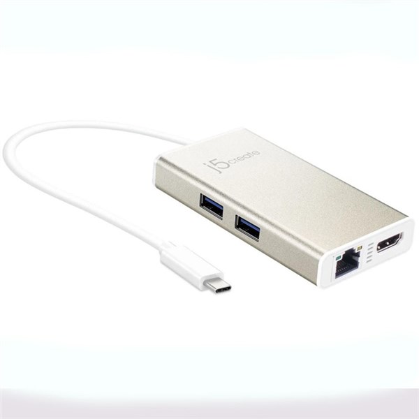 J5CREATE USB-C MULTI ADAPTER HDMI ETHERNET USB 3.1 HUB/PD 3.0 100MM GOLD