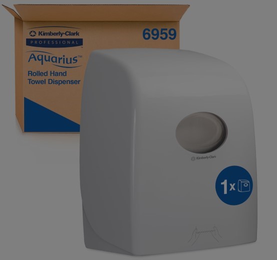 Product Overview & Guides- KIMBERLY-CLARK PROFESSIONAL? AQUARIUS? hard roll towel dispenser features a controlled dispensing system that measures the length of towel helping to prevent waste and overuse. And touch-free dispensing enables the user to retrieve the towel without touching the dispenser, helping to promote good hygiene in the workplace. Certified by HACCP International and compatible with both white and blue SCOTT? Hard roll towel up to 305m in length (1005, 6668) this dispenser is a high capacity dispensing solution for busy workplaces. Featuring a contemporary design in white, high-gloss ABS plastic, with smooth and continuous surfaces making it easy to clean whilst also blending seamlessly into your workplace. This commercial dispenser features a viewing window that enables you to check towel levels before refilling for more efficient washroom maintenance and is lockable to deter pilferage. Measuring 326 x 430 x 241mm, this dispenser is compatible with both KLEENEX? Hard roll towel 6765