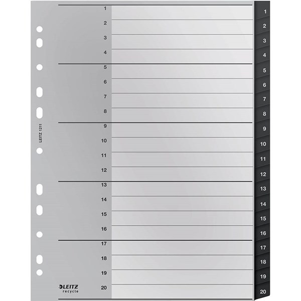 LEITZ RECYCLED INDEX DIVIDER PP 1-20 TAB A4 GREY