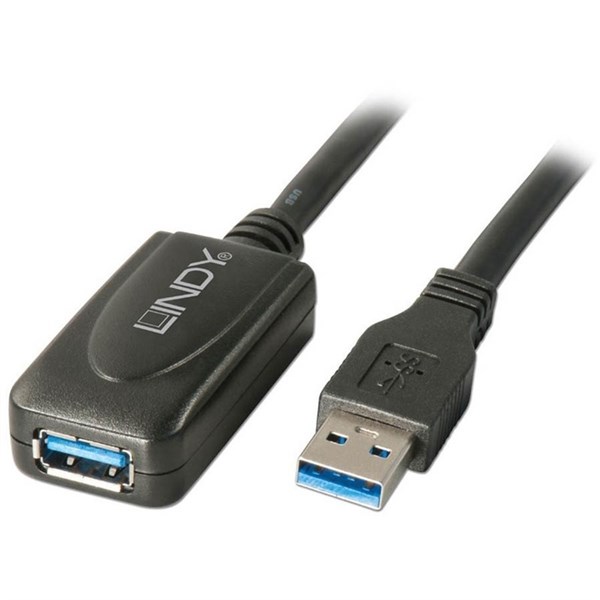 The Lindy USB 3.0 Active Extension Cable uses built-in active electronics to extend the cable length of a USB 3.0 device by an additional 5m whilst continuing to support data transfer rates of up to 5Gbps - With its USB A male and USB A female connector it allows Type A devices such as storage devices, webcams and other Type A devices to be connected at longer distances to PCs, laptops and tablets, while also ensuring flexible positioning