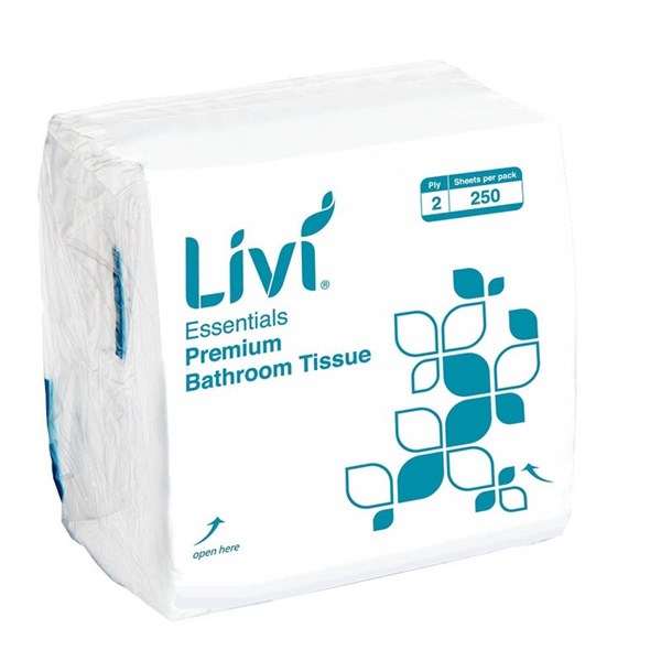 LIVI ESSENTIALS INTERLEAVED TOILET TISSUE 2-PLY 250 SHEET 100 X 205MM CARTON 36