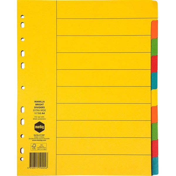 MARBIG EXTRA WIDE DIVIDER MANILLA 10-TAB A4 BRIGHT ASSORTED