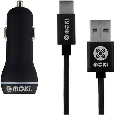 MOKI CAR CHARGER AND SYNCHARGE BRAIDED CABLE USB-A TO USB-C 900MM BLACK