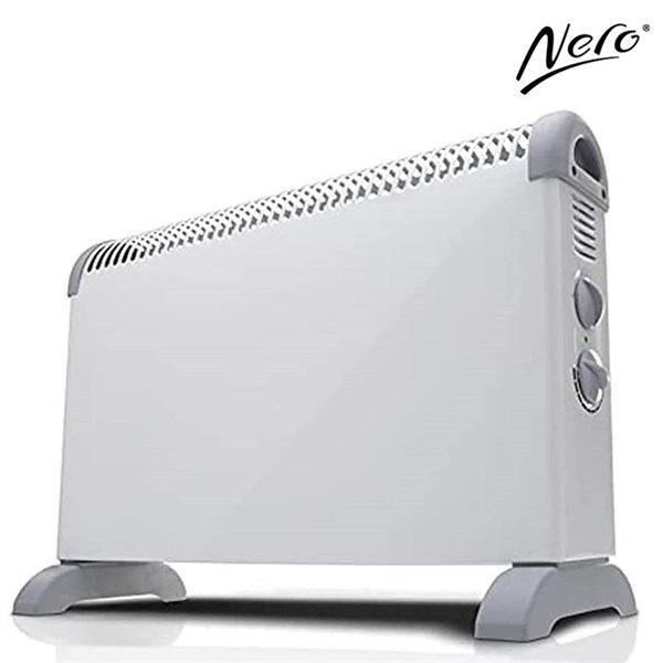 Powerful, slimline and silent, Nero Convector Heater supplies up to 2000W of power - With adjustable thermostatic control, two power settings, and with built in carry handle