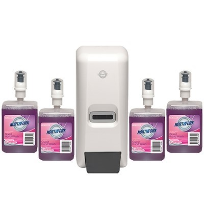 Northfork handwash cartridge doesnt come into contact with the dispenser - Dispenser made from resilient white ABS plastic with a gloss finish