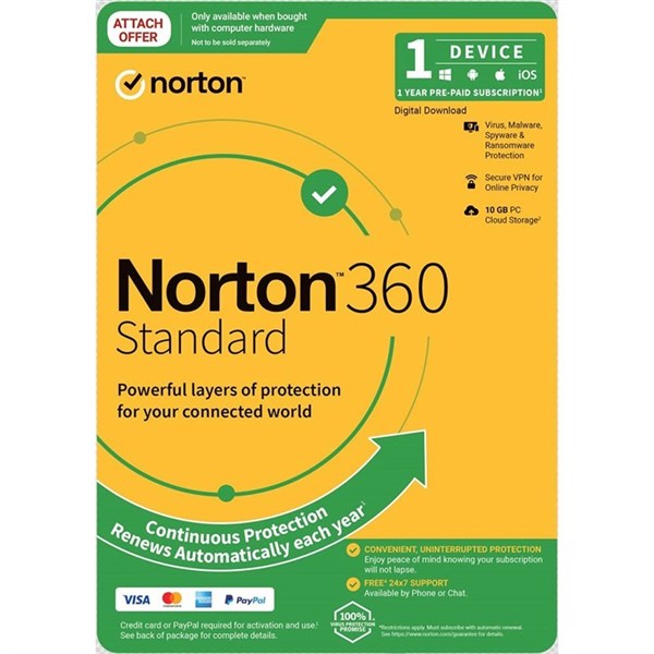 Norton 360 Standard anti-virus software is for 1 user, 1 device with 1 year subscription - Powerful layers of protection for your connected world