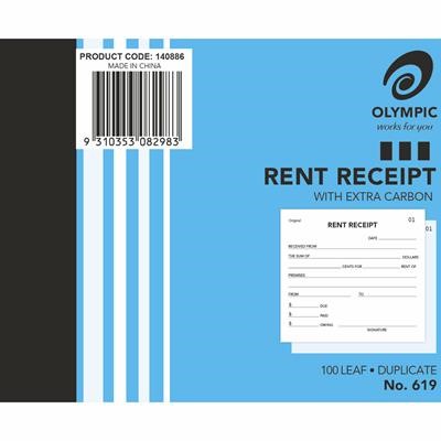 OLYMPIC 619 RENT RECEIPT BOOK CARBON DUPLICATE 100 LEAF 100 X 125MM