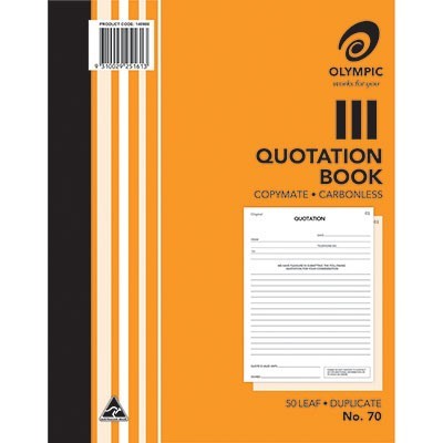 OLYMPIC 70 QUOTATION BOOK CARBONLESS DUPLICATE 50 LEAF 250 X 200MM EACH