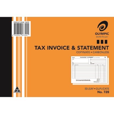OLYMPIC 728 INVOICE AND STATEMENT BOOK LANDSCAPE DUPLICATE 50 LEAF A5