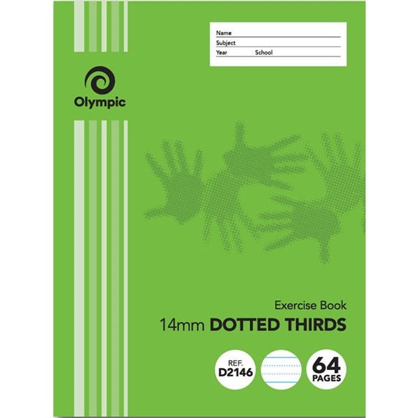 Olympic Dotted Thirds Exercise Book is lined with feint ruled 14mm dotted lines so you can perfect your handwriting skills. The paper is thick so that you can use both sides of every page - The lines are ruled every 14mm to keep you writing neatly