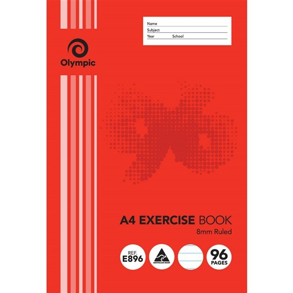 OLYMPIC E896 EXERCISE BOOK 8MM RULED 55GSM 96 PAGE A4