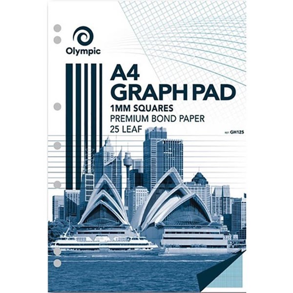 OLYMPIC GH125 GRAPH PAD 1MM SQUARES 70GSM 25 LEAF A4