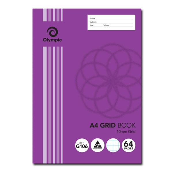 The Olympic Grid Book 10mm A4 Purple 64 Pages is an A4 exercise book suitable for graphing, drawing, and note-taking - Its 10mm grid layout provides clear guidance for diagrams, charts, and structured writing across 64 pages