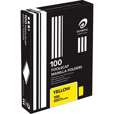 OLYMPIC MANILLA FOLDER FOOLSCAP YELLOW BOX 100