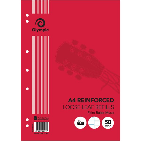 OLYMPIC RM5 REINFORCED LOOSE LEAF REFILL RULED MUSIC 55GSM A4 PACK 50 SHEETS