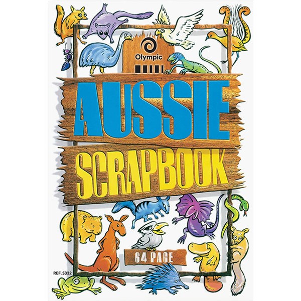OLYMPIC S332 SCRAPBOOK AUSSIE ANIMALS BLANK 60GSM 64 PAGE 335 X 240MM