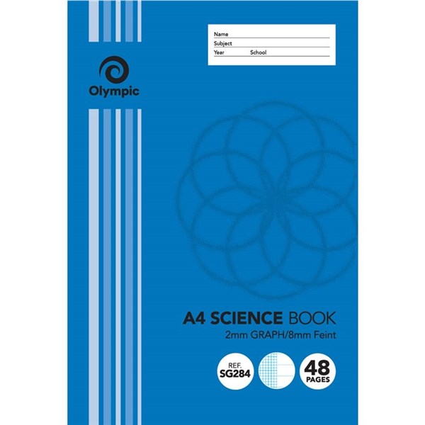 OLYMPIC SG284 SCIENCE BOOK 2MM GRAPH 8MM RULED 48 PAGE 55GSM A4 PACK 20