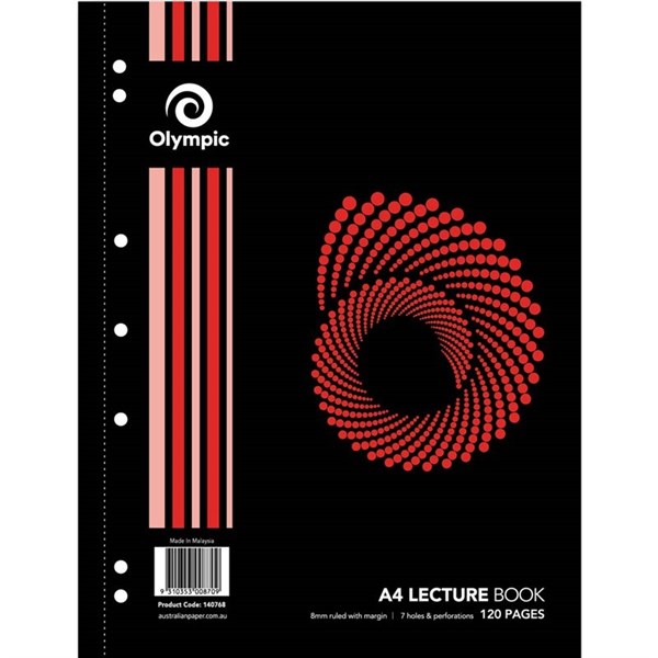 OLYMPIC SL870 LECTURE BOOK 7 HOLE 8MM RULED 120 PAGE 55GSM A4 PACK 10