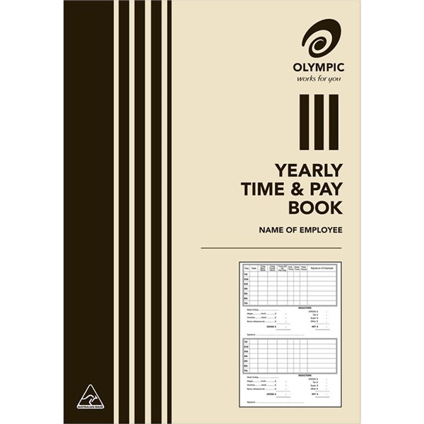 Olympic Yearly Time and Pay Book is designed for you to record your annual work hours and wages - There are 32 pages in the book with 2 forms per page