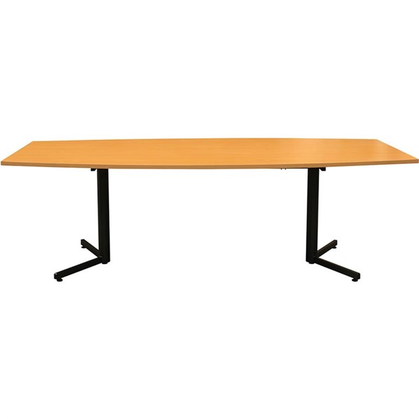 OM BOARDROOM TABLE BOAT SHAPED 2400 X 1200MM BEECH/BLACK