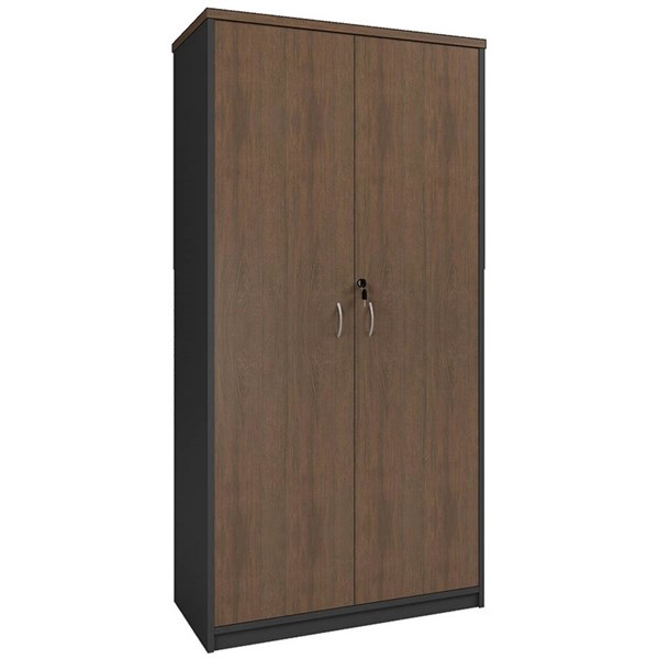 OM PREMIER FULL DOOR STATIONERY CUPBOARD 900 X 450 X 1800MM REGAL WALNUT/CHARCOAL