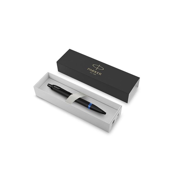 PARKER IM BALLPOINT PEN VIBRANT RINGS SATIN BLACK WITH MARINE BLUE ACCENTS