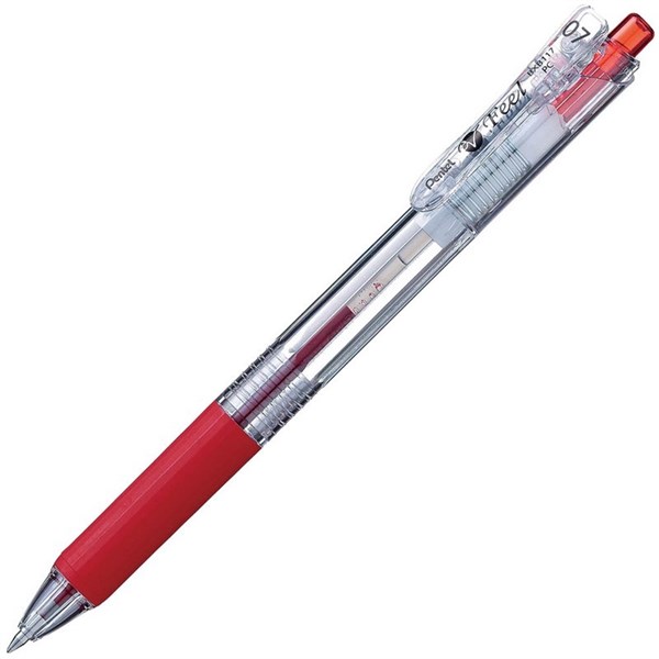 PENTEL BXB117 VFEEL RETRACTABLE BALLPOINT PEN 0.7MM RED BOX 10