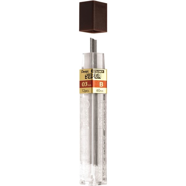 PENTEL HI-POLYMER MECHANICAL PENCIL LEAD REFILLS B 0.3MM TUBE 12
