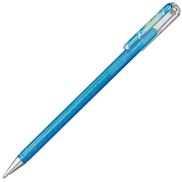 PENTEL K110 HYBRID DUAL METALLIC GEL INK PEN 1.0MM BLUE GREY / METALLIC BLUE AND SILVER BOX 12