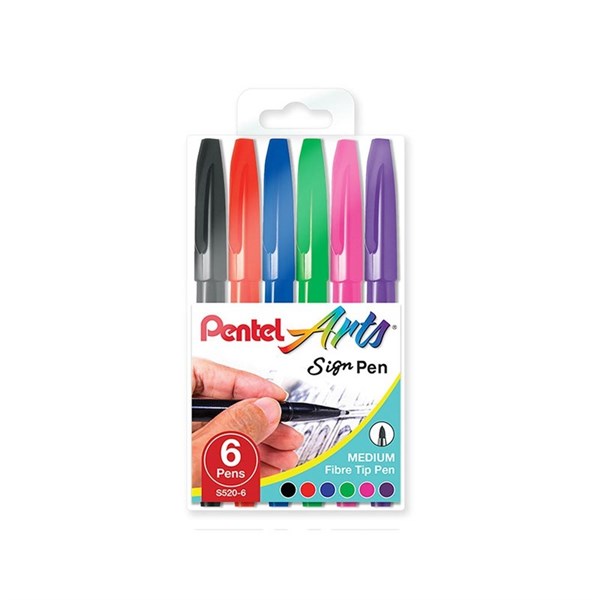 PENTEL S520 SIGN PEN 0.8MM ASSORTED PACK 6