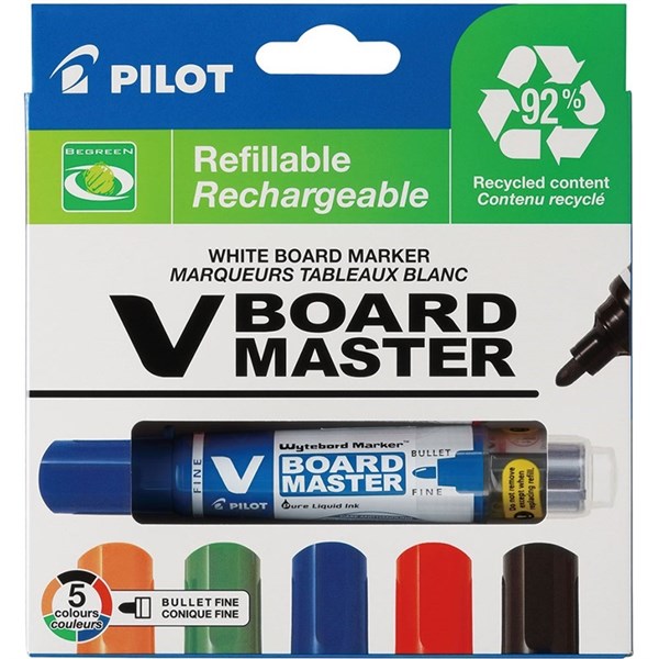 PILOT BEGREEN V BOARD MASTER WHITEBOARD MARKER BULLET 6.0MM ASSORTED WALLET 5