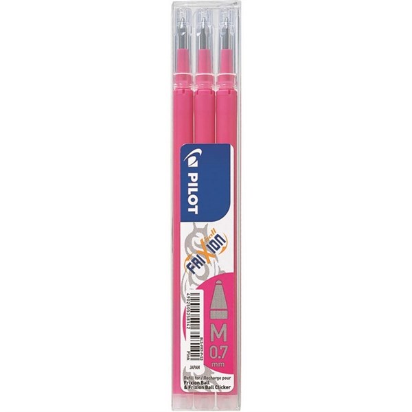 PILOT BLS-FR7 FRIXION ERASABLE ROLLERBALL GEL REFILL MEDIUM 0.7MM PINK PACK 3
