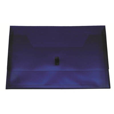 See through gusseted storage pocket with hook loop closure - Linen embossed translucent foolscap document storage wallet