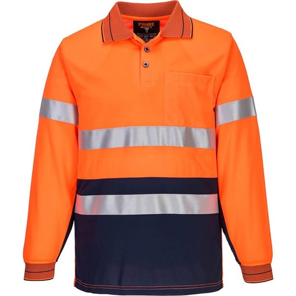 PORTWEST MP513 MICRO MESH POLO SHIRT LONG SLEEVE 2-TONE WITH TAPE