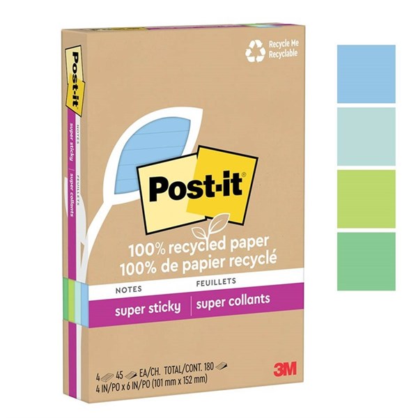 POST-IT 4621R-4SST SUPER STICKY NOTES 101 X 152MM RECYCLED LINED OASIS PACK 4