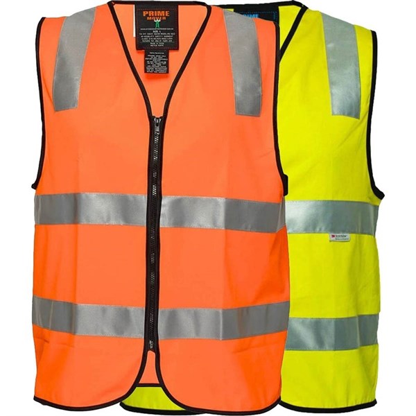 PRIME MOVER MW338 HI-VIS COTTON VEST ZIPPER CLOSURE REFLECTIVE TAPE