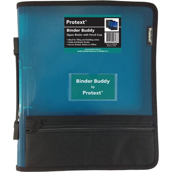 PROTEXT BINDER BUDDY WITH ZIPPER 2 RING WITH HANDLE PLUS PENCIL CASE PLUS POCKETS 25MM AQUA