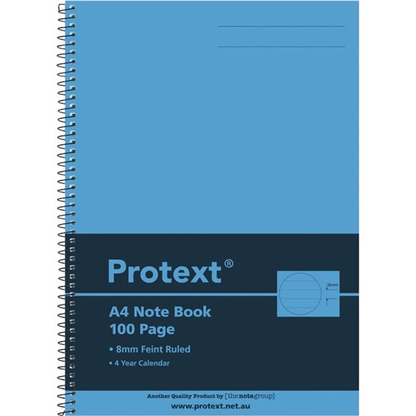 PROTEXT NOTE BOOK 8MM FEINT RULED 55GSM 100 PAGE A4 BLUE