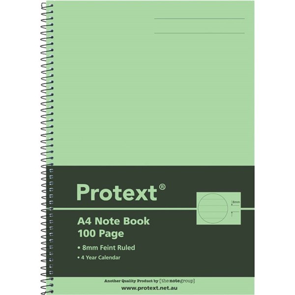 PROTEXT NOTE BOOK 8MM FEINT RULED 55GSM 100 PAGE A4 LIME