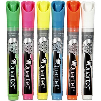 QUARTET GLASSBOARD MARKER BULLET TIP ASSORTED PACK 6